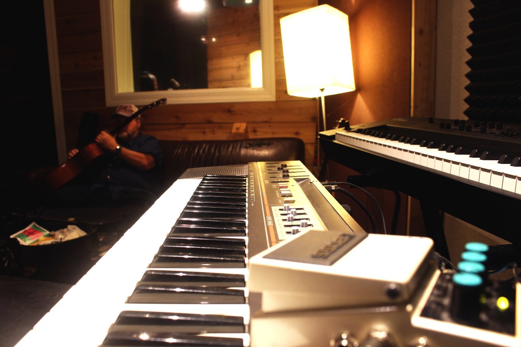 String and keyboard tracking in the B room 8/27/19Three musicians track a song. Jason Elinoff tracks his Viola in the back isolation booth, Vars Pope practices lead on the resident acoustic, and Travis Pope runs through the venerable Casiotone CT320 at 5th St Studios